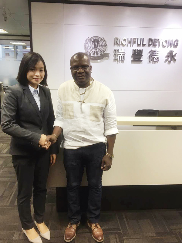 瑞豐德永集團(tuán)廣州公司總經(jīng)理?xiàng)钤亙x女士與多米尼克總理羅斯福·斯凱里特先生(Mr. Rossevelt Skerrit)合影