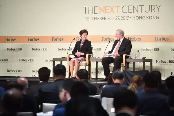 香港特別行政區(qū)行政長官林鄭月娥恭賀福布斯一百周年刊慶之余,表示香港今年亦慶祝特區(qū)成立20周年,祝愿香港未來百尺竿頭, 更進(jìn)一步。