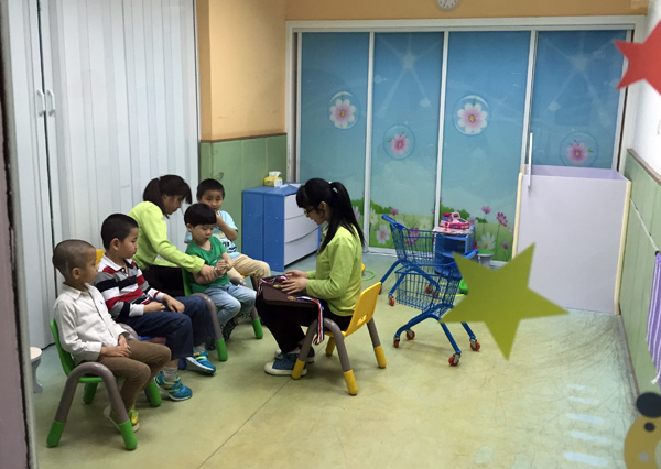 我們來到機(jī)構(gòu)會議室,熱情的李老師為我們介紹了自閉癥這種疾病 ,自閉癥這種病癥病因不清,無法篩查無法預(yù)防,到1-2歲時才有明顯癥狀,不過68:1的發(fā)病率還是讓我們吃了一驚,這表示“星星們”就在離我們不遠(yuǎn)的地方。大家認(rèn)真聽取了自閉癥早期訓(xùn)練的好處,以及社會、家庭對自閉癥群體包容、引導(dǎo)、教育的責(zé)任,呼吁全社會都來關(guān)愛這個群體。