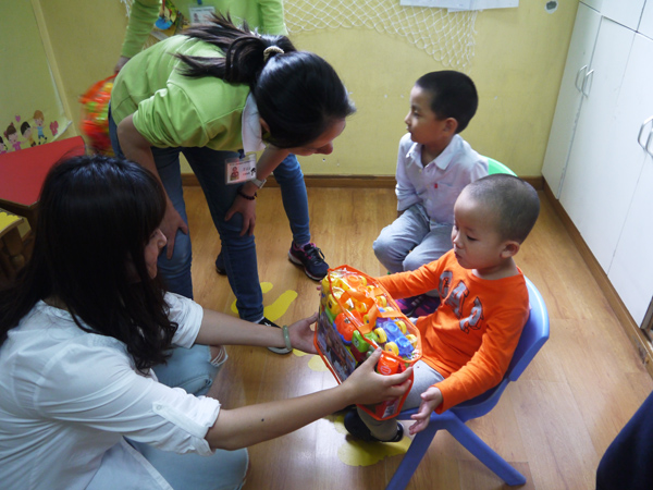 最后我們贈送給小朋友我們特意準(zhǔn)備的玩具,孩子們表現(xiàn)出的興奮和正常的小朋友幾乎沒有什么差別,甚至還有孩子認(rèn)出了“熊二”,好象“星星”真的對我們眨了眨眼睛……