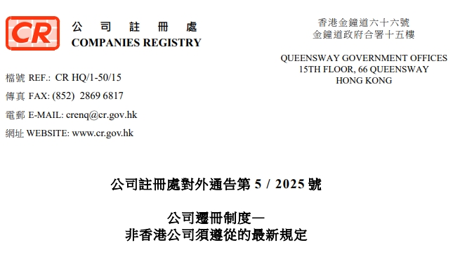 《公司條例》(第622章)(下稱「該條例」)已于2025年5月23日作出修訂,相關的《2025年公司(修訂)(第2號)條例》除引入新的公司遷冊制度外,亦更新了根據(jù)該條例第16部注冊或將予注冊的非香港公司須遵從的規(guī)定。
