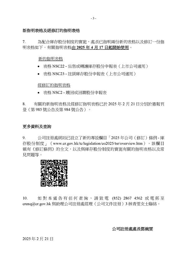 《公司條例》(第622章)(下稱「該條例」)已于2025年5月23日作出修訂,相關(guān)的《2025年公司(修訂)(第2號(hào))條…