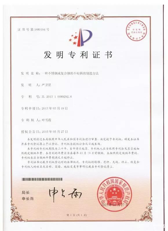 2013年3月,康巴赫蜂窩不粘鍋專利技術(shù)得到國(guó)家知識(shí)產(chǎn)權(quán)局的權(quán)威認(rèn)證,康巴赫成為官方認(rèn)證的蜂窩不粘鍋的原創(chuàng)發(fā)明者。