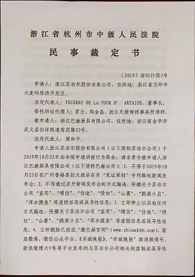 10月23日,蘇泊爾即向浙江省杭州市中級(jí)人民法院以現(xiàn)金人民幣300萬(wàn)元提起訴前行為保全擔(dān)保,要求康巴赫立即停止可能影響蘇泊爾公司商譽(yù)的不當(dāng)宣傳行為,這份《民事裁定書(shū)》趕在康巴赫舉行新聞發(fā)布會(huì)前送達(dá)了康巴赫手中。