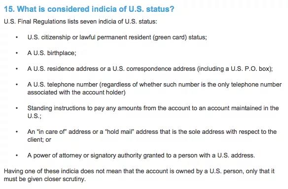 ③用美國(guó)護(hù)照在美國(guó)境外開戶,或在開戶時(shí)填寫美國(guó)聯(lián)絡(luò)資料者;