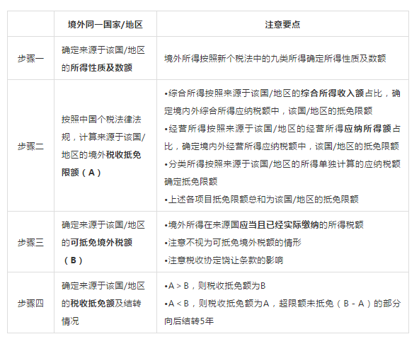居民個人按照以下主要步驟確定境外稅收抵免: