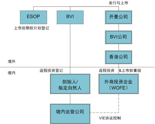 一般而言,VIE架構(gòu)實際上為擬上市公司為實現(xiàn)海外上市,在開曼或BVI設(shè)立一個平行的離岸公司,以該離岸公司作為未來上市或融資主體,選擇這些地方都有一些共同特點:社會穩(wěn)定、低負稅、注冊公司便捷、維護成本小、有健全的法律體系,沒有外匯關(guān)注,有嚴(yán)格的商業(yè)和銀行保密系統(tǒng),方便的中介服務(wù)等等。