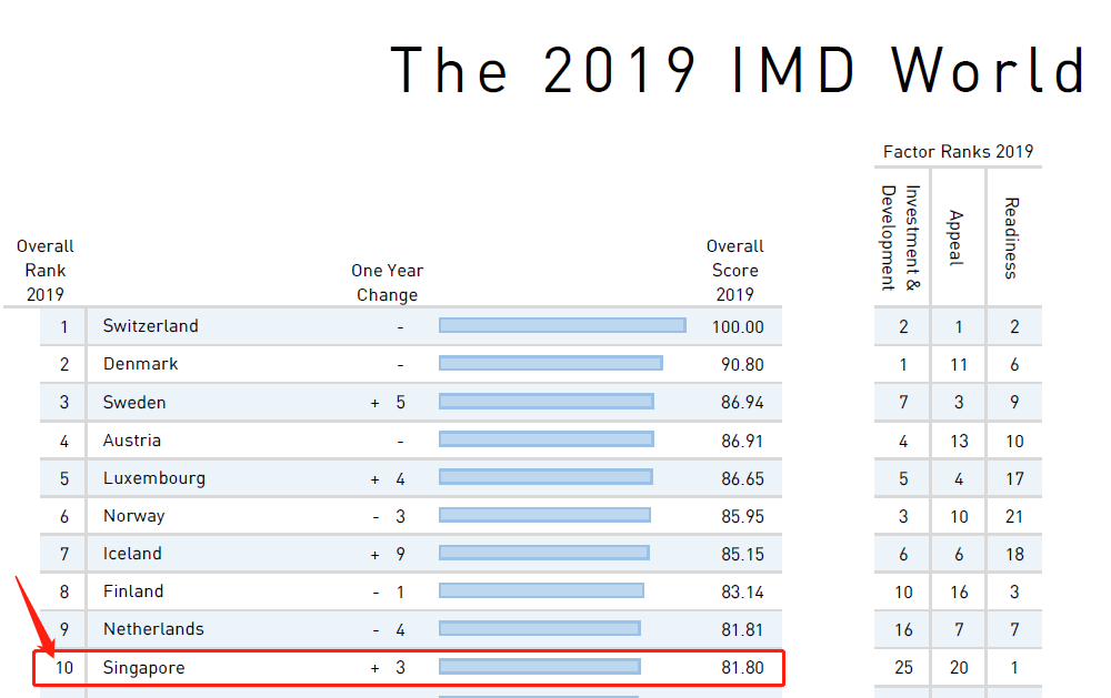 根據(jù)《2019年IMD世界人才報告》,全球63個國家和地區(qū)中,新加坡的人才準(zhǔn)備度,是位于全球第一的。新加坡的整體綜合排名也躍升至全球第10名,是亞洲唯一進(jìn)入前10的國家。