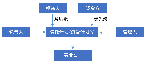 信托計(jì)劃/資管計(jì)劃等還可以做成結(jié)構(gòu)化產(chǎn)品,即管理人根據(jù)投資者不同的風(fēng)險(xiǎn)偏好對(duì)受益權(quán)進(jìn)行分層配置,使具有不同風(fēng)險(xiǎn)承擔(dān)能力和意愿的投資者,通過(guò)投資不同層級(jí)的受益權(quán)來(lái)獲取不同的收益,并承擔(dān)相應(yīng)風(fēng)險(xiǎn),如下圖所示:
