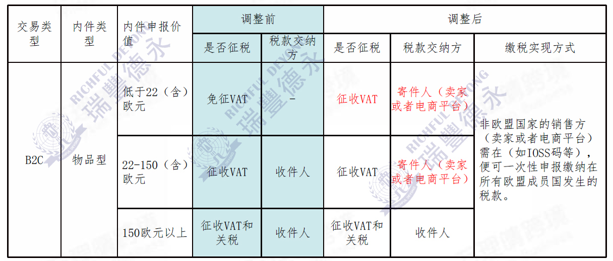 歐盟針對非歐盟來源的B2C包裹征收VAT規(guī)則的變化