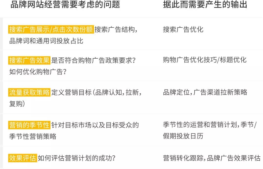 跨境電商可能聽說過幾十種營銷策略,比如網(wǎng)紅營銷、體驗(yàn)式營銷、社交媒體營銷、視頻頻道建立等……但真要下手做時(shí)依然迷惑。剛起步的網(wǎng)站需要化繁為簡,營銷漏斗從大的開始篩,可以考慮先從谷歌廣告開始。在選擇谷歌廣告的產(chǎn)品時(shí),如果不知道選哪幾種,可以先選搜索廣告和購物廣告;如果不知道投的時(shí)候重點(diǎn)在哪里,那請(qǐng)對(duì)照下方的表格,考慮清楚下面幾個(gè)問題,理清頭緒。