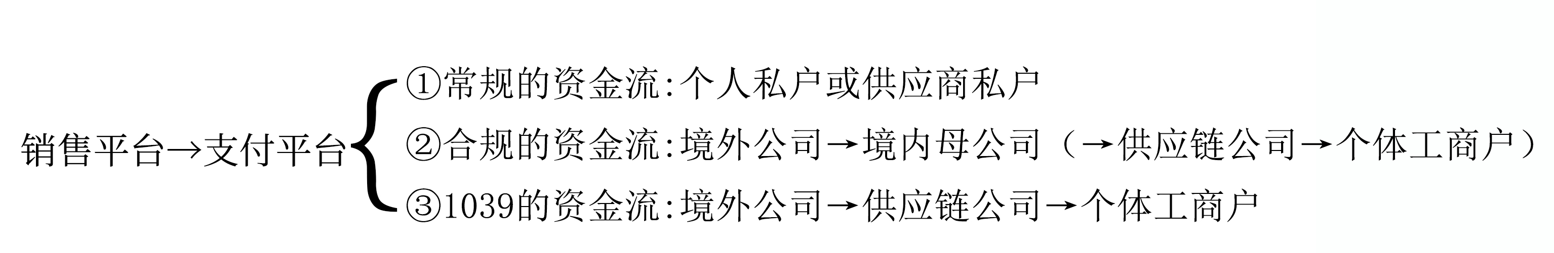 1039的資金流:銷售平臺→支付平臺→境外公司→供應(yīng)鏈公司→個體工商戶;