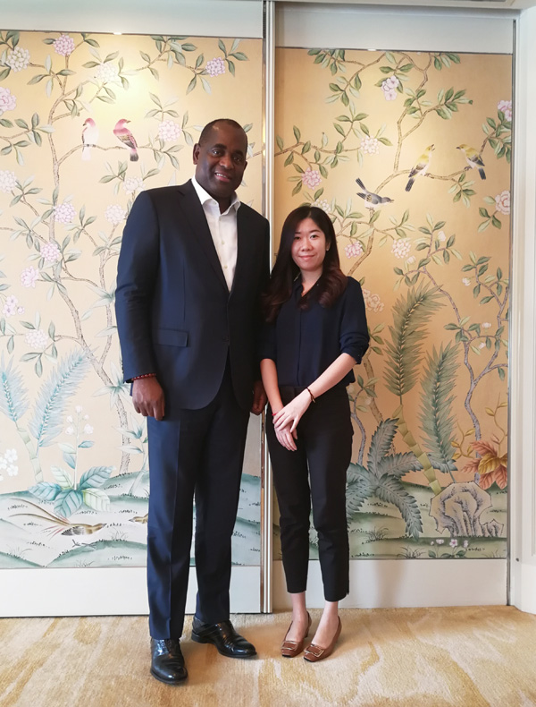 瑞豐德永集團廣州公司總經(jīng)理楊詠儀女士與多米尼克總理羅斯福·斯凱里特先生(Mr. Rossevelt Skerrit)合影