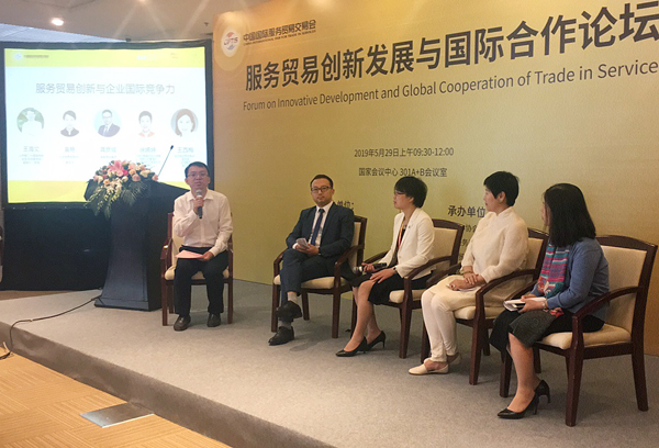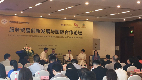 2019年5月29日,世界貿易中心協(xié)會、京津滬渝服務貿易聯(lián)盟、長江經(jīng)濟帶服務貿易聯(lián)盟在國家會議中心舉辦了2019中國國際服務貿易交易會(簡稱“京交會”)“服務貿易創(chuàng)新發(fā)展與國際合作論壇”。