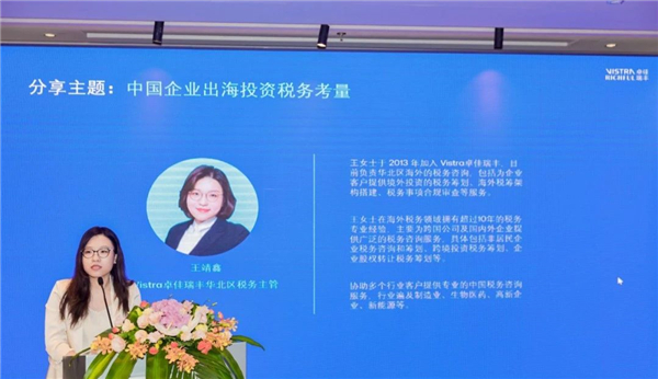 RICHFUL瑞豐華北區(qū)稅務(wù)主管王靖鑫女士作為受邀嘉賓,圍繞”中國企業(yè)出海投資的稅務(wù)考量“這一主題展開了解讀分析。她深刻揭示了當(dāng)前中企出海所面臨的合規(guī)痛點(diǎn)和監(jiān)管挑戰(zhàn),通過積極引導(dǎo),為企業(yè)家們正確應(yīng)對指明了合規(guī)方向,助力中企走穩(wěn)走好國際化經(jīng)營合規(guī)之路。