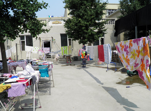 在經(jīng)過登記、清單物品、洗手等環(huán)節(jié)我們才走入內(nèi)院,看到孩子們曬洗的衣物,有些凌亂卻十分干凈。