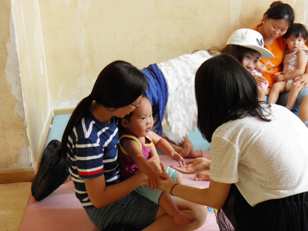 慢慢走近主樓,主樓共三層,二層跟三層是所有較小的嬰兒和生病較重的孩子的地方,所有探訪人員及義工只可以在室外娛樂區(qū)及一樓娛樂區(qū)與孩子們玩耍。進門時心里都是酸酸的,但看到孩子們的笑臉時一切都變得不重要了。