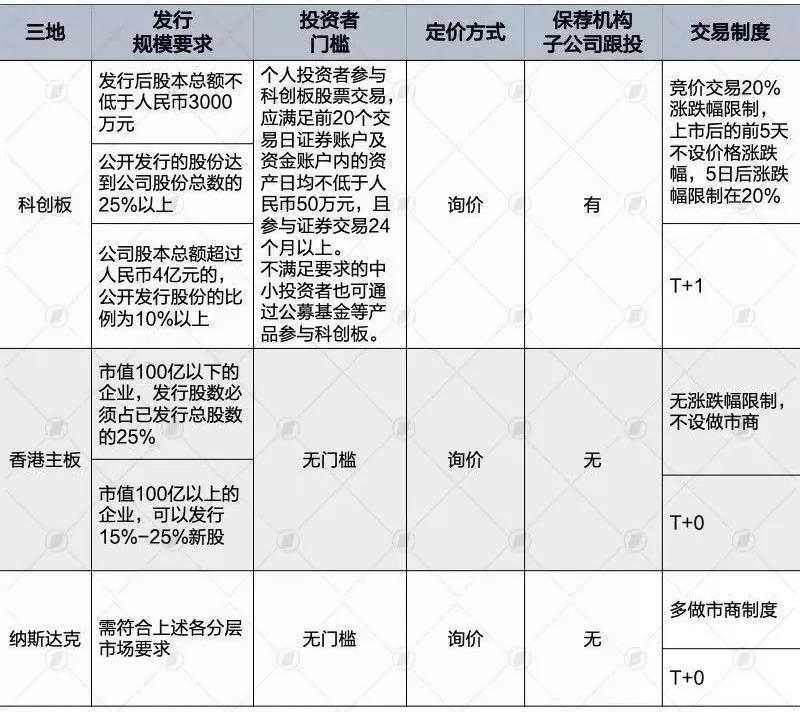 科創(chuàng)板一出,對(duì)于想要沖擊資本市場(chǎng)的企業(yè)來說,又多了一個(gè)重要的選擇。在科創(chuàng)板的概念剛出現(xiàn)時(shí),就被市場(chǎng)稱為中國版“納斯達(dá)克”,同時(shí),在定價(jià)、交易等一些環(huán)節(jié)上與港股市場(chǎng)接近。那問題來了,多了一個(gè)選擇后,科創(chuàng)板、香港主板、納斯達(dá)克,你的企業(yè)該選哪一個(gè)市場(chǎng)首發(fā)?要選擇在哪個(gè)市場(chǎng)上市,首要條件當(dāng)然是要滿足該市場(chǎng)的上市條件,這就牽涉到了三地不同的上市規(guī)則。以下,從三個(gè)市場(chǎng)的上市行業(yè)定位、上市條件指標(biāo)、發(fā)行制度、交易制度、退市制度等方面逐一對(duì)比,以期給準(zhǔn)備上市的企業(yè)一個(gè)清晰的圖景。