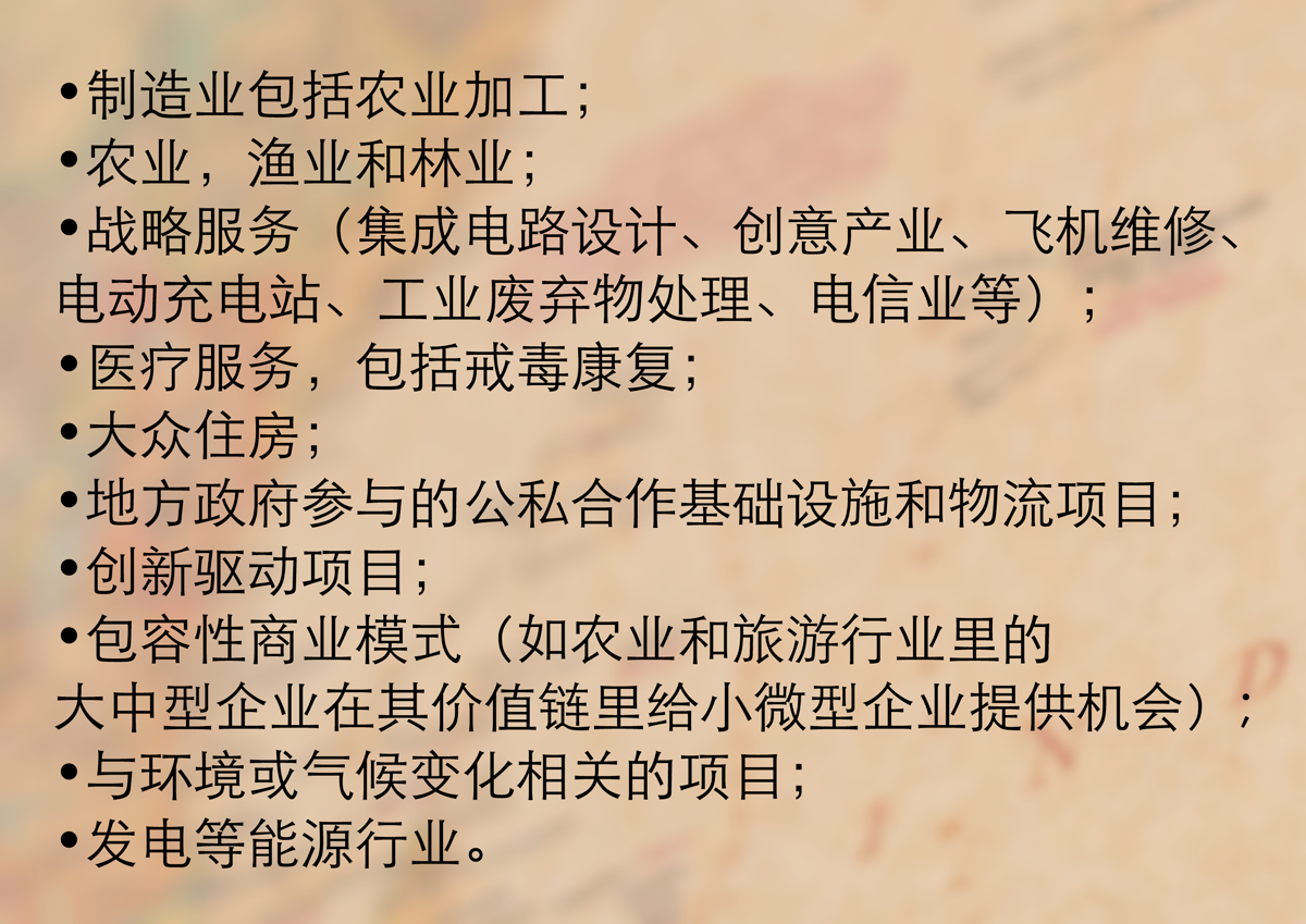 投資優(yōu)先項(xiàng)目還包括出口業(yè)務(wù),包括生產(chǎn)和制造出口產(chǎn)品、對出口企業(yè)的支持和服務(wù)。