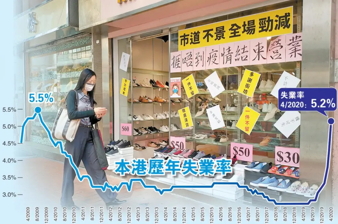 受疫情影響,香港失業(yè)率連升7個月,升至逾10年高位。香港特區(qū)政府統(tǒng)計處5月19日下午公布的數(shù)據(jù)顯示,香港經(jīng)季節(jié)性調(diào)整的失業(yè)率,由1月至3月的4.2%,上升至2月至4月的5.2%,超過10年來高位。