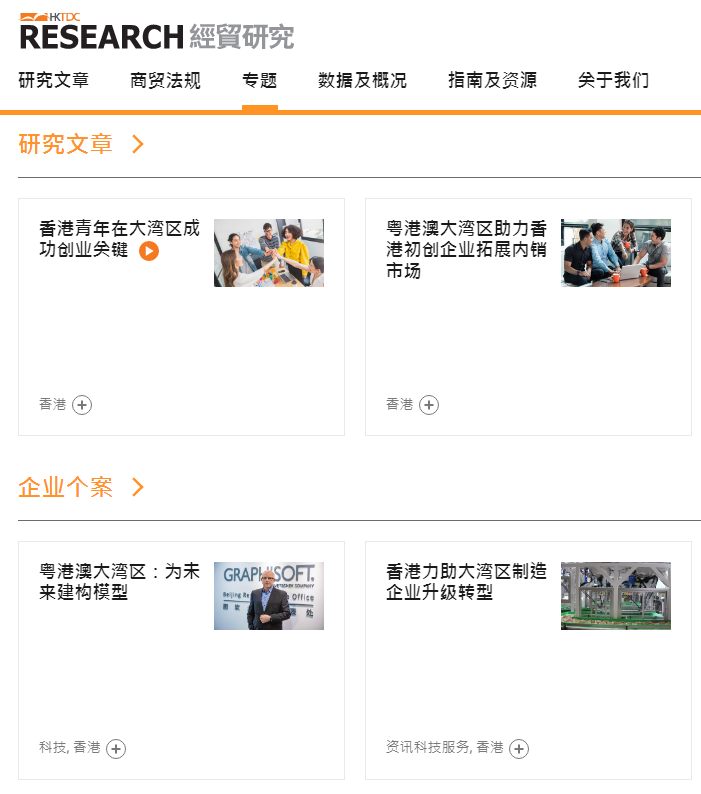 香港貿(mào)發(fā)局官網(wǎng)會不定期更新個案研究,幫助港企、香港青年更加了解粵港澳大灣區(qū)。