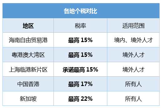 我們把各大自貿(mào)港、自由貿(mào)易區(qū)、大灣區(qū)等相關(guān)個人所得稅稅率做了一個對比,可以發(fā)現(xiàn),符合條件的海南自貿(mào)港高端和緊急人才,所享受的個稅優(yōu)惠力度還是蠻大的↓↓