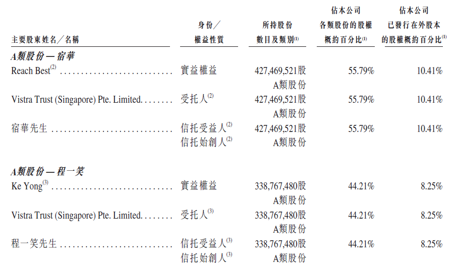 宿華與程一笑二人是快手的控股股東,兩人同時(shí)擁有快手A類股份以及B類股份,宿華擁有55.79%的A類股份,程一笑擁有剩余44.21%,其他投資者如騰訊、五源資本等皆為為B類股份。