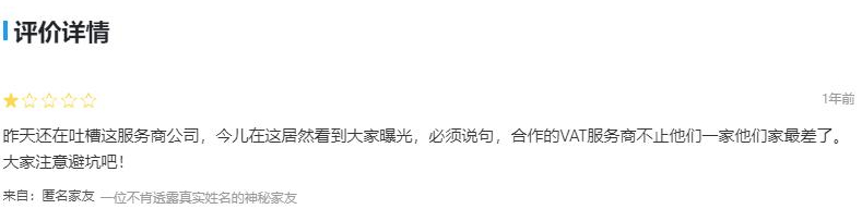 而根據(jù)業(yè)內(nèi)人士的說法,目前估計(jì)有一千多家公司在該服務(wù)商辦理了VAT業(yè)務(wù),但現(xiàn)在該公司已經(jīng)出現(xiàn)問題,并且傳出了跑路的風(fēng)聲。