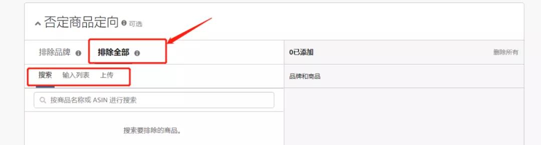 第十步:【否定商品定向】設置,分為排除品牌、排除全部選項。