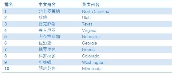 全美運(yùn)營(yíng)商環(huán)境州TOP10