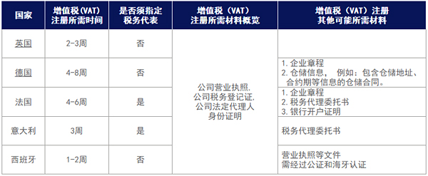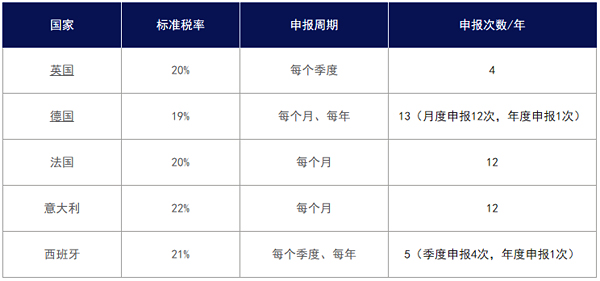 1.英德法意西增值稅(VAT)稅率、申報周期對照表
