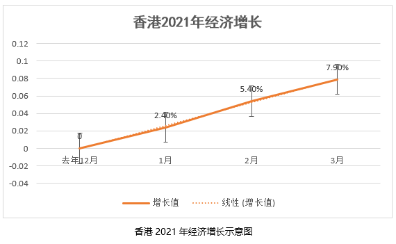 1.港府公布今年第一季(1-3月)的經(jīng)濟增長了7.9%,相較于2020年底的數(shù)據(jù)高了近0.1個百分點。