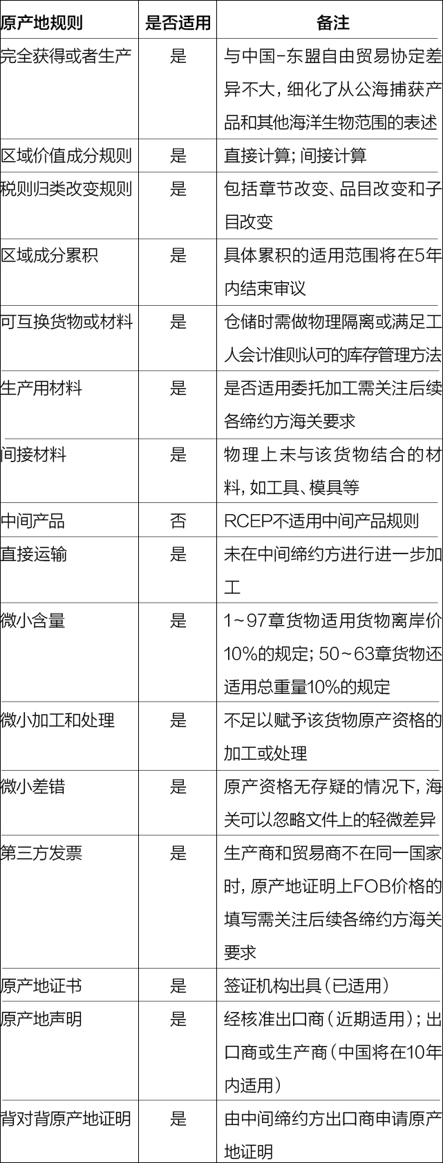附件:國(guó)際通行原產(chǎn)地規(guī)則在RCEP協(xié)定框架下的適用情況