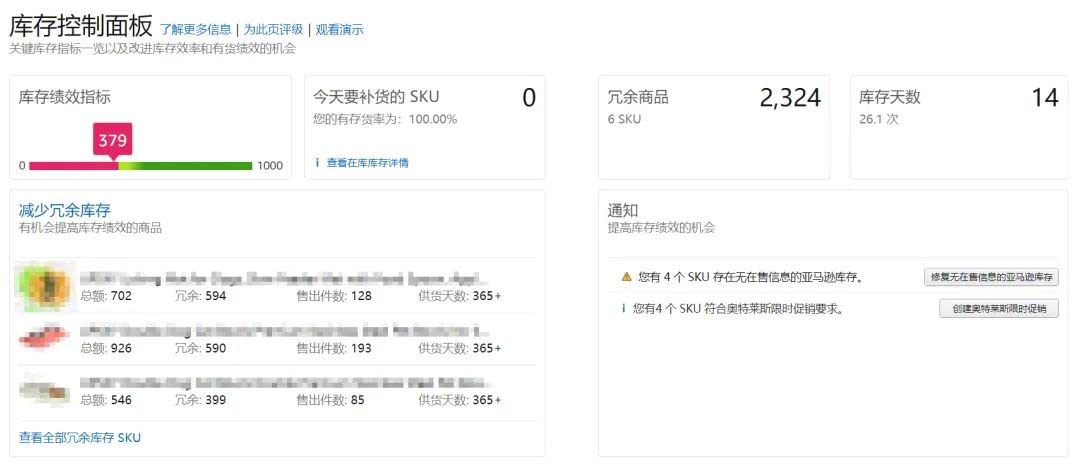 同時(shí),庫(kù)存績(jī)效頁面還提供了與每個(gè)因素相關(guān)的其他指標(biāo),以及提高庫(kù)存績(jī)效的建議,您可以查看相關(guān)的內(nèi)容以獲取幫助。