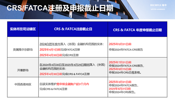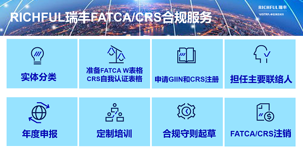 如果您仍然不確定實(shí)體是否落入CRS/FATCA范圍,或者需要我們協(xié)助注冊(cè)/申報(bào)等合規(guī)事宜,請(qǐng)盡快聯(lián)系為您提供專(zhuān)屬服務(wù)的RICHFUL瑞豐客戶(hù)經(jīng)理,以尋求支持,我們將竭誠(chéng)為您服務(wù)。
