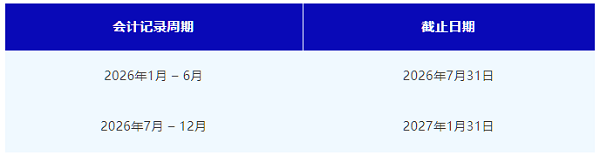 大型實(shí)體和非大型非控股實(shí)體必須準(zhǔn)備年度財(cái)務(wù)總結(jié),并保存在其注冊辦公室。常見截止日期:
