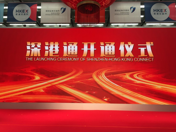 12月5日上午,香港交易所舉行“深港通”開通儀式,香港特區(qū)行政長官梁振英與香港交易所主席周松崗在港交所共同為當(dāng)日首筆交易鳴鑼開市,標(biāo)志著“深港通”正式啟動。